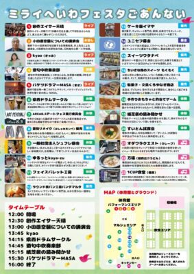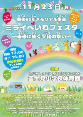 戦後80年のメモリアル事業として、平和の大切さや尊さを地域のみなさんと共有する事を目的に「ミライへいわフェスタ」が開催されます。